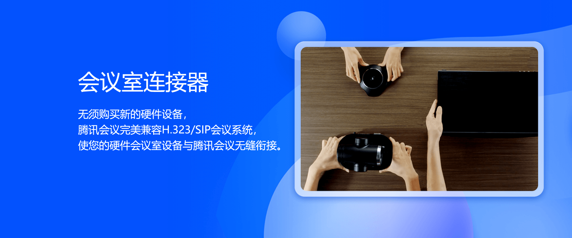 提供SaaS接入方式,只需简单拨号,即可接入腾讯会议,与桌面PC/ 移动端互联互通;同时支持下沉式部署,将会议室连接器部署在企业 内网,解决复杂防火墙网络穿越及传统H.323/SIP协议抗网络丢包、 抖动能力弱的问题,保障卓越的音视频效果